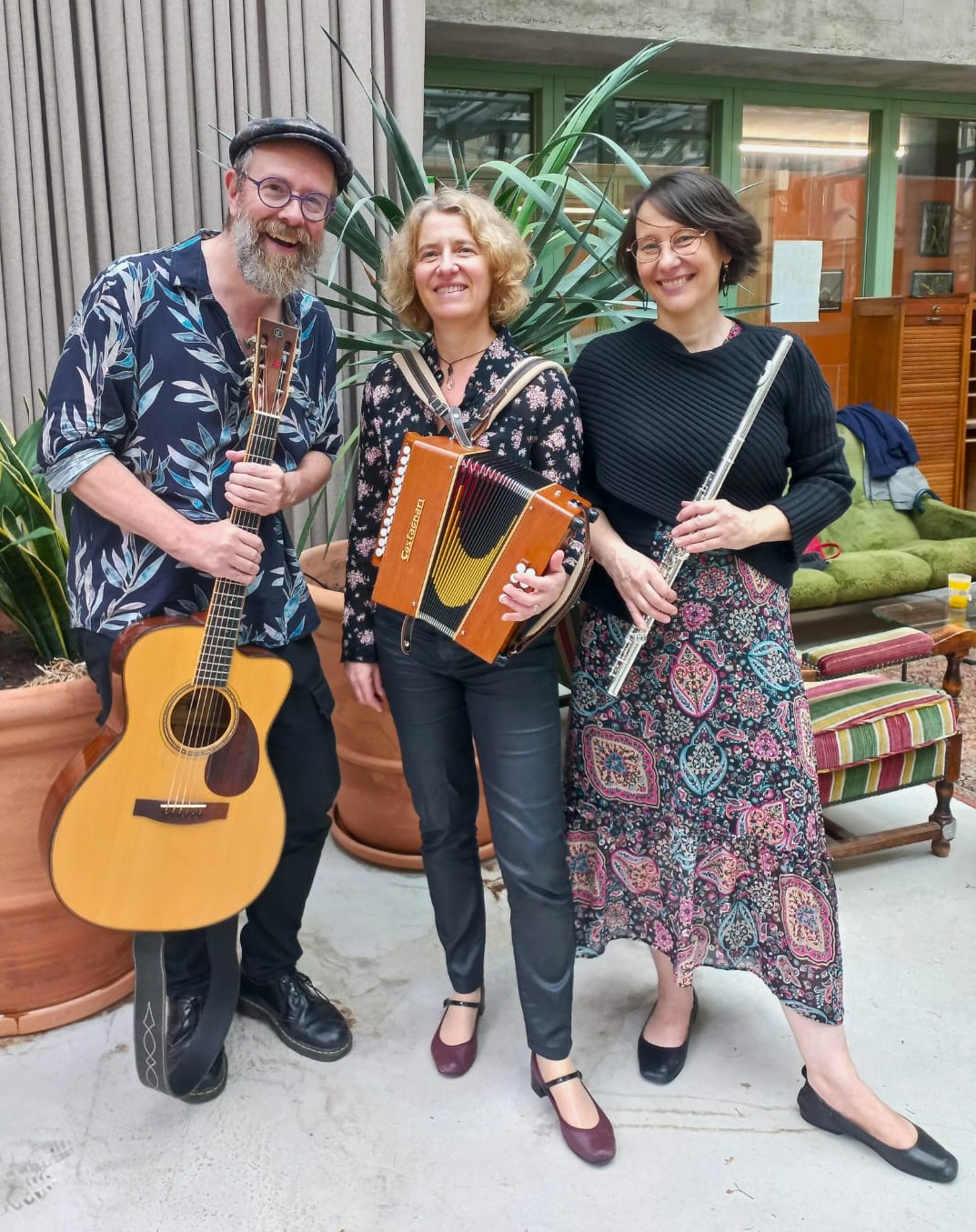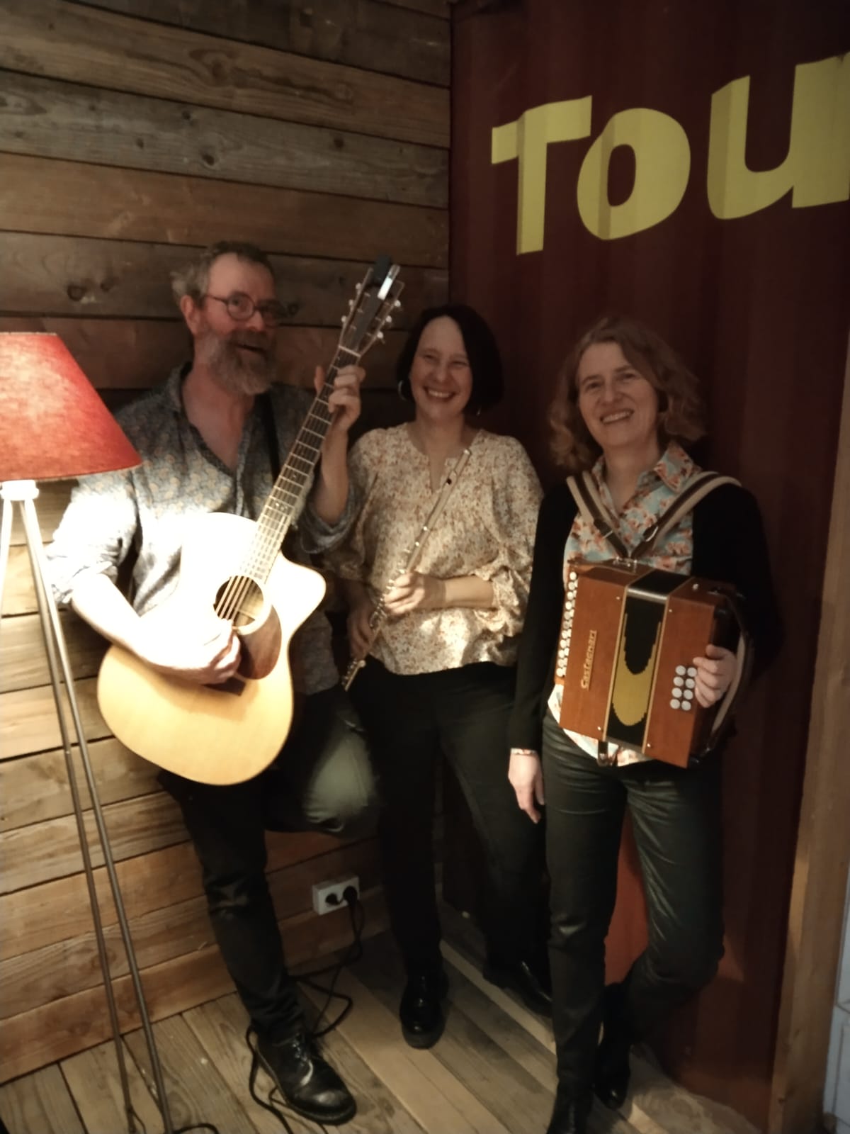 suivi de Folk en Stock, trio lyonnais flûte-accordéon-guitare (et chant occasionnel), qui enflamme les parquets en revisitant les différents répertoires des musiques trad’ à danser, ou juste à écouter !