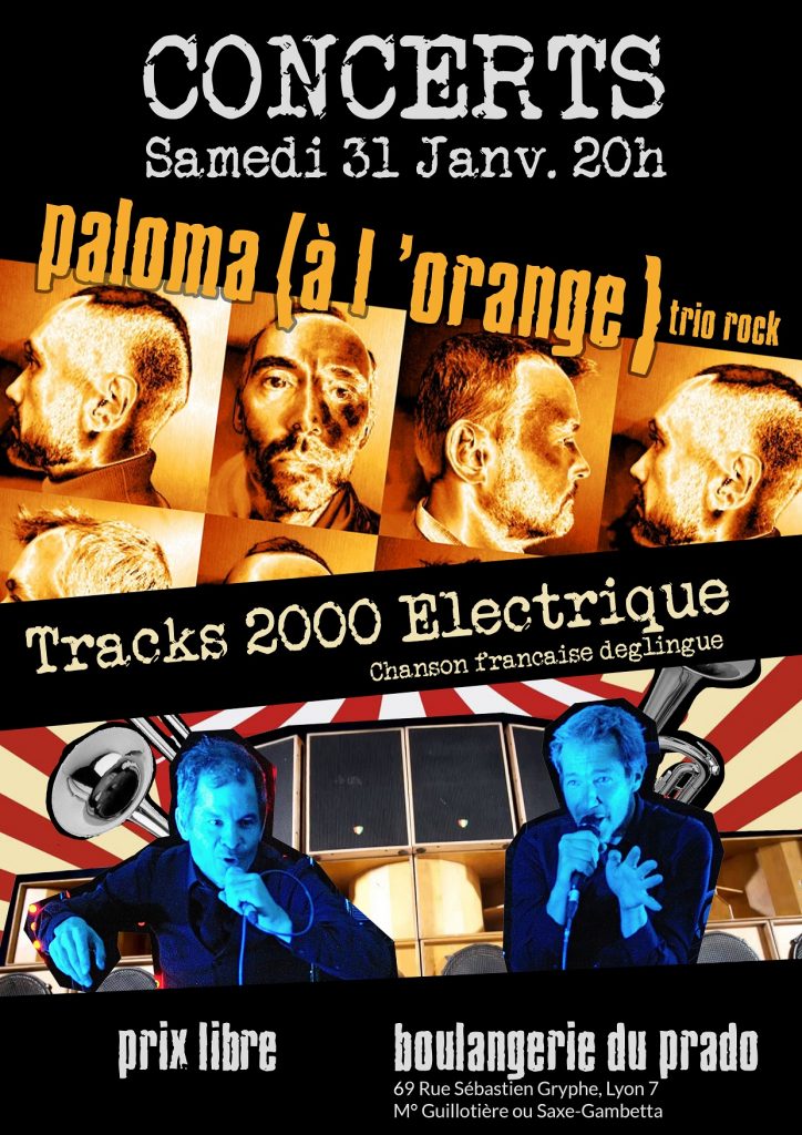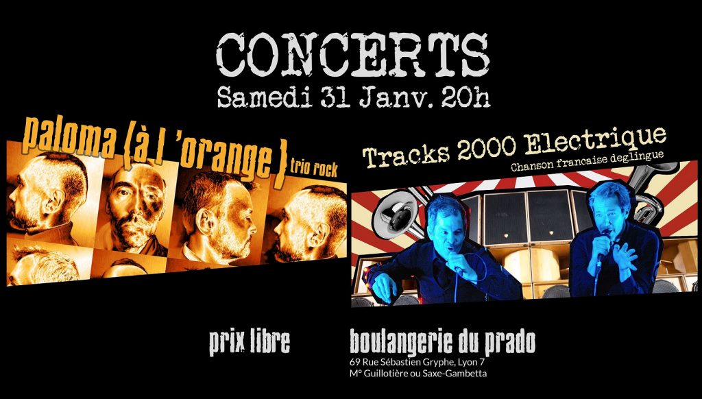 Grosse soirée concerts avec : Tracks 2000 Electrique (Chanson Française déglingue) et Paloma (à l’orange) (Trio rock)